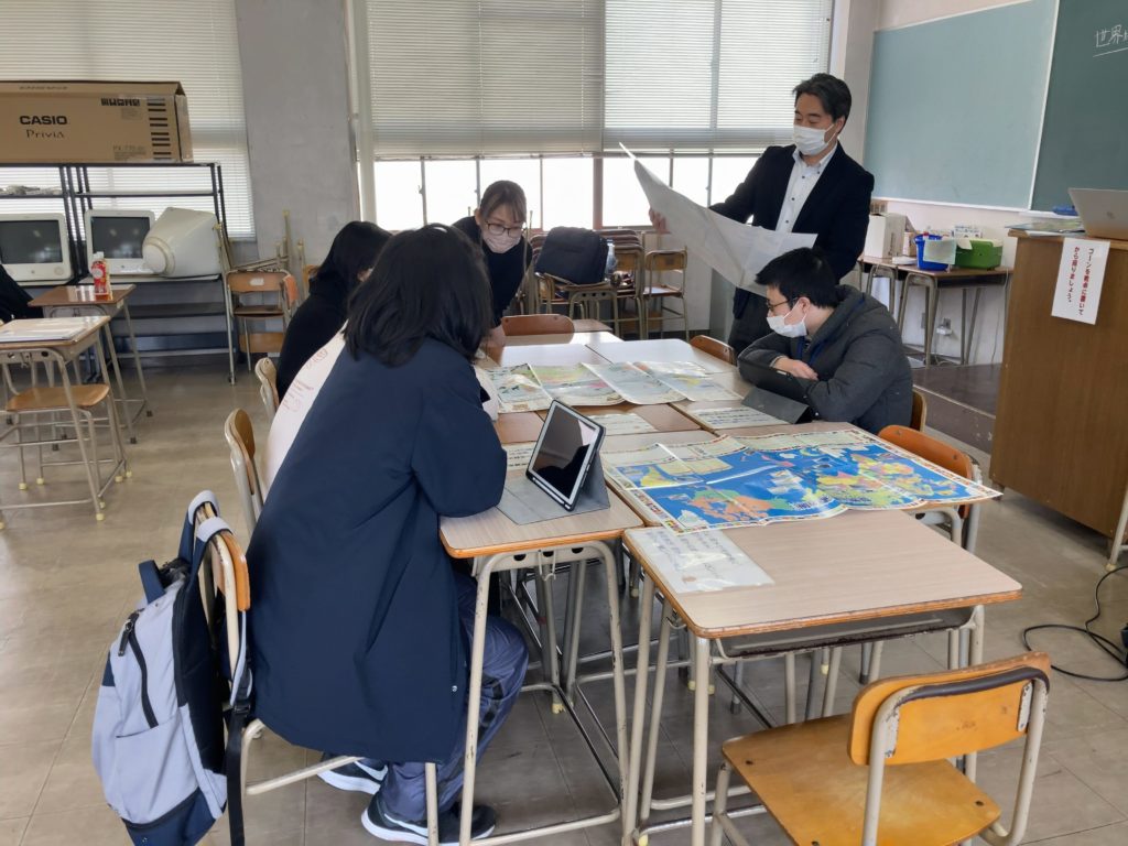 「NPO法人みらいをつかむスタディーズ(みらスタ)」より専門講師を迎え、今回は、岡山を中心とした世界地図の作成に挑みます。世界地図?ってあの・・・小学生の頃、机のビニールシートの下に挟んだり、部屋の壁や天井、はたまたトイレ?などに貼っていたあれ?